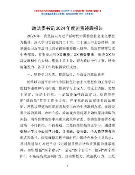 / 政法委书记2024年度述责述廉报告