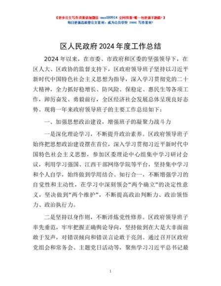 / 区人民政府2024年度工作总结