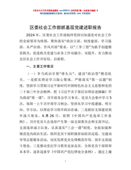 / 区委社会工作部抓基层党建述职报告