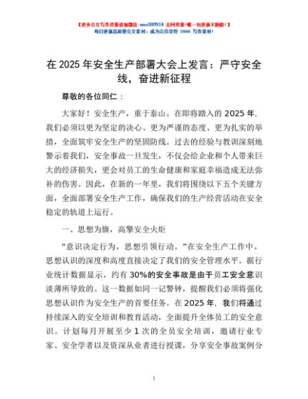 / 在2025年安全生产部署大会上发言:严守安全线,奋进新征程