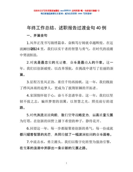 / 年终工作总结、述职报告过渡金句40例