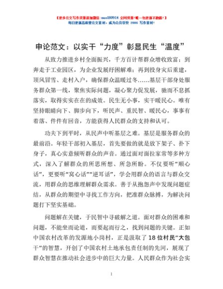/ 申论范文:以实干“力度”彰显民生“温度”