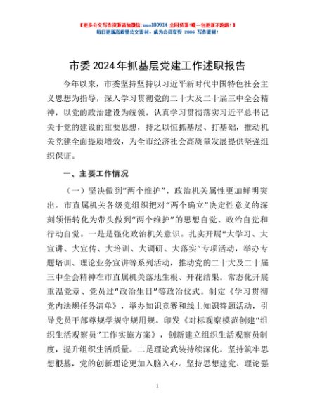 / 市委2024年抓基层党建工作述职报告