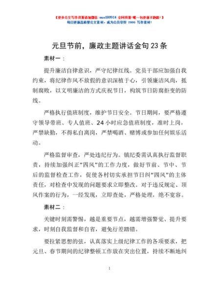 / 元旦节前,廉政主题讲话金句23条