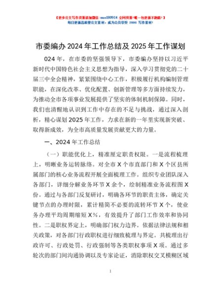 / 市委编办2024年工作总结及2025年工作谋划