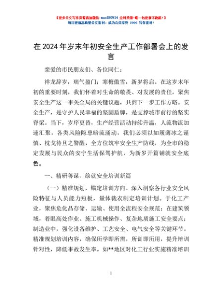 / 在2024年岁末年初安全生产工作部署会上的发言
