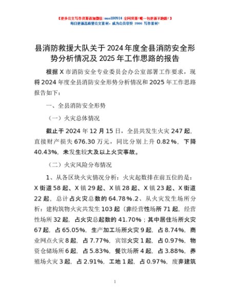 / 县消防救援大队关于2024年度全县消防安全形势分析情况及2025年工作思路的报告