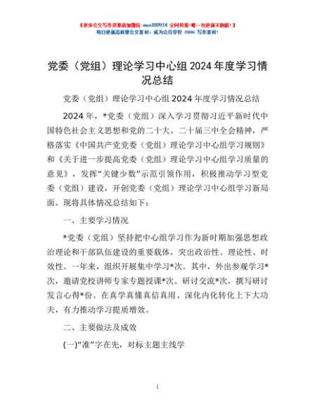 / 党委(党组)理论学习中心组2024年度学习情况总结