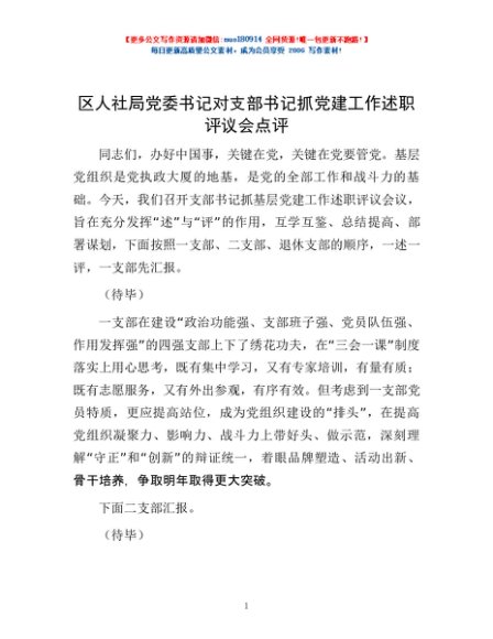 / 区人社局党委书记对支部书记抓党建工作述职评议会点评
