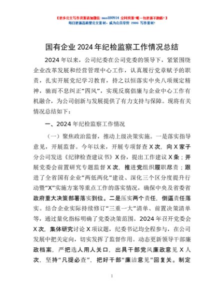 / 国有企业2024年纪检监察工作情况总结