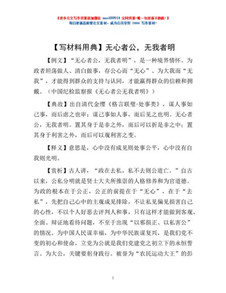 【写材料用典】无心者公,无我者明