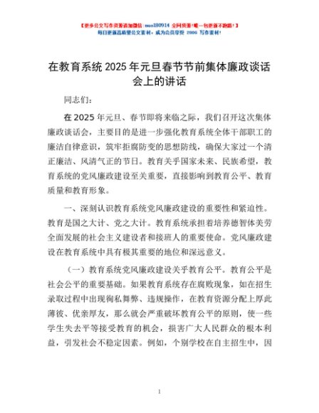 / 在教育系统2025年元旦春节节前集体廉政谈话会上的讲话