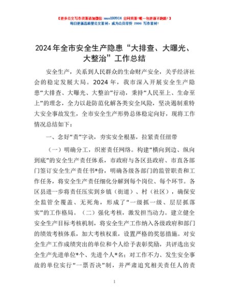 / 2024年全市安全生产隐患“大排查、大曝光、大整治”工作总结