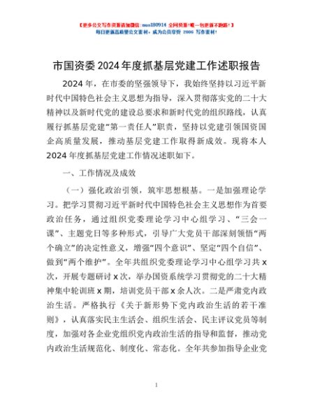 / 市国资委2024年度抓基层党建工作述职报告