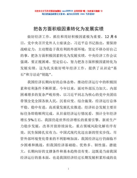 / 把各方面积极因素转化为发展实绩