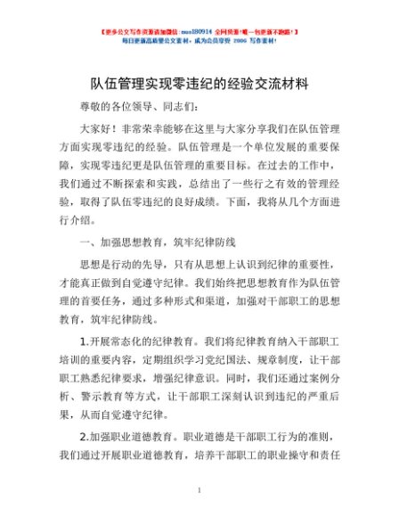 / 队伍管理实现零违纪的经验交流材料
