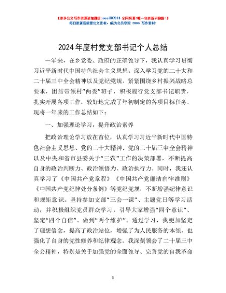 / 2024年度村党支部书记个人总结