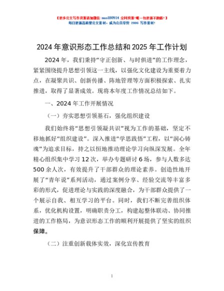 / 2024年意识形态工作总结和 2025 年工作计划