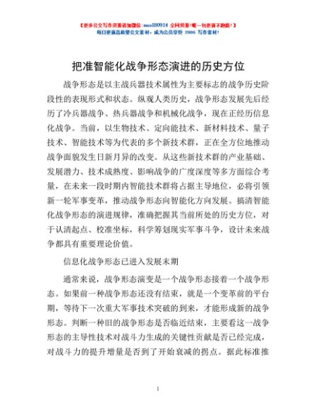 / 把准智能化战争形态演进的历史方位