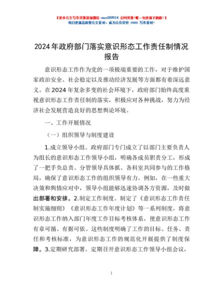 / 2024年政府部门落实意识形态工作责任制情况报告