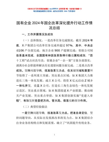 / 国有企业2024年国企改革深化提升行动工作情况总结