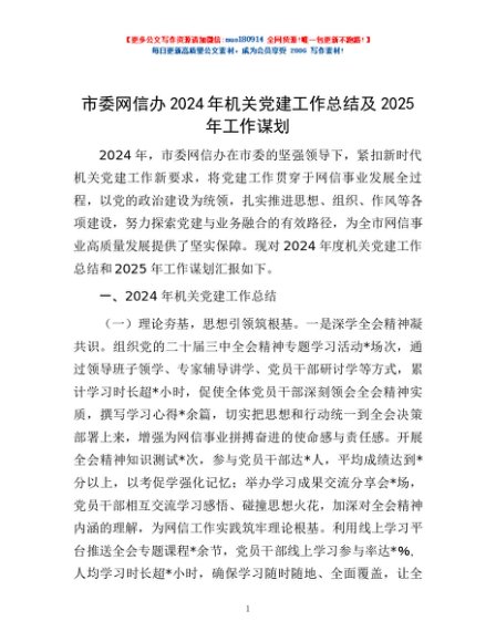 / 市委网信办2024年机关党建工作总结及2025年工作谋划