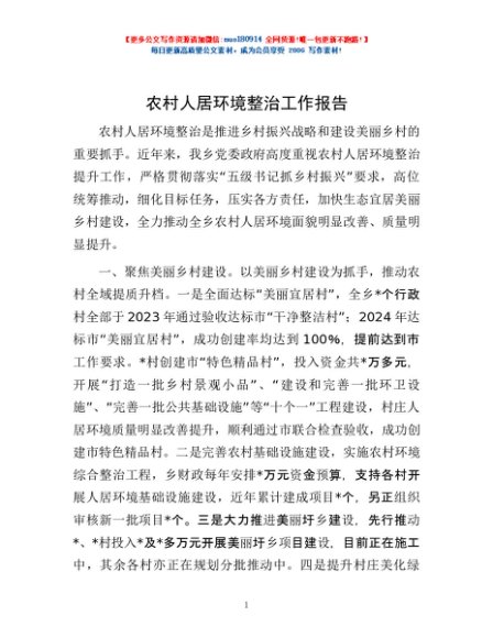 / 农村人居环境整治工作报告