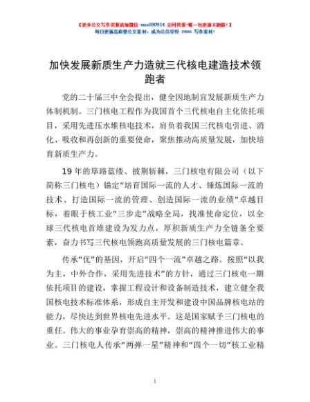 / 加快发展新质生产力造就三代核电建造技术领跑者