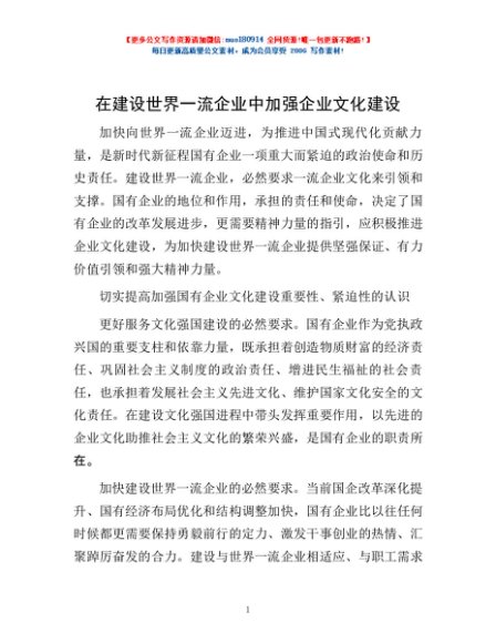 / 在建设世界一流企业中加强企业文化建设