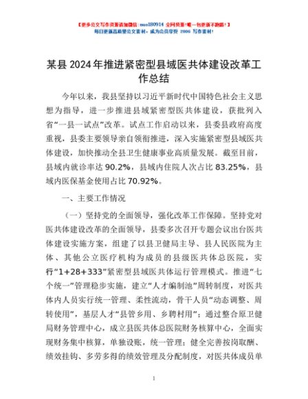 / 某县2024年推进紧密型县域医共体建设改革工作总结