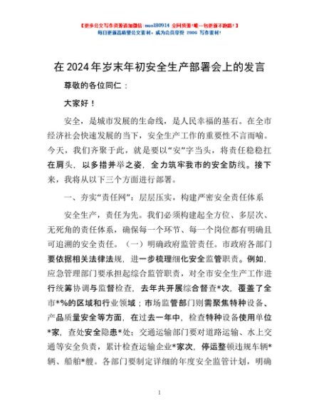 / 在2024年岁末年初安全生产部署会上的发言