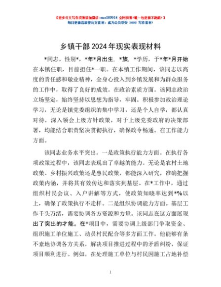 / 乡镇干部2024年现实表现材料
