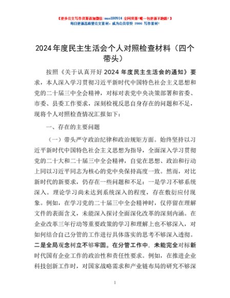 / 2024年度民主生活会个人对照检查材料(四个带头)