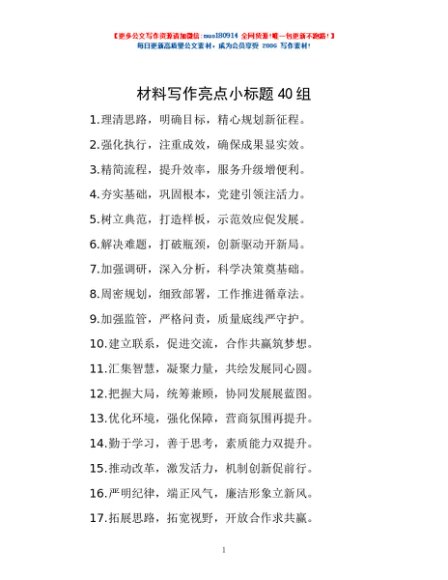 / 材料写作亮点小标题40组
