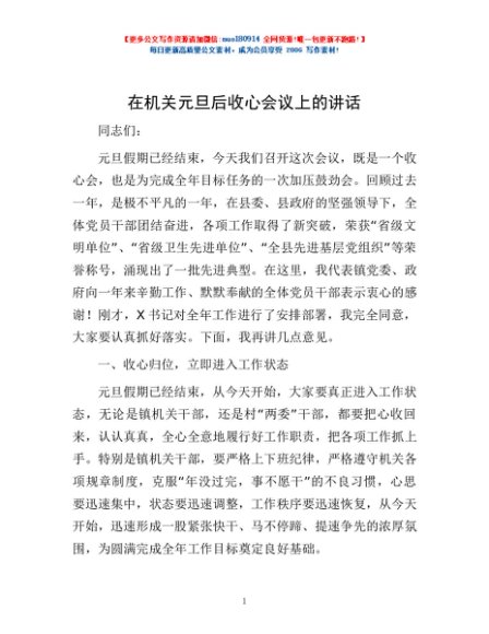 / 在机关元旦后收心会议上的讲话