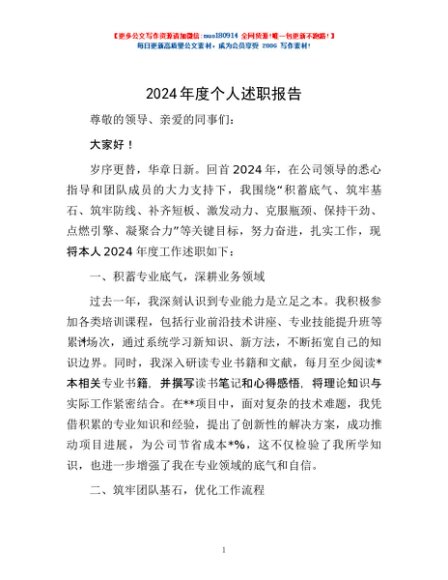 / 2024年度个人述职报告