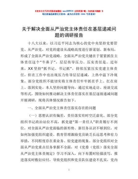 / 关于解决全面从严治党主体责任在基层递减问题的调研报告
