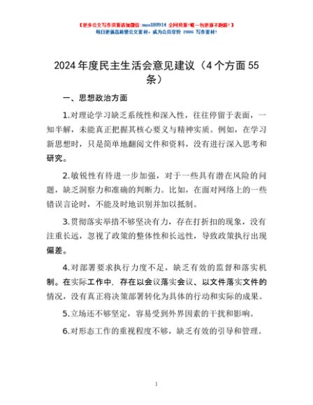 / 2024年度民主生活会意见建议(4个方面55 条)
