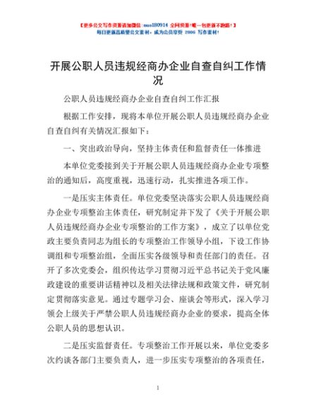 / 开展公职人员违规经商办企业自查自纠工作情况