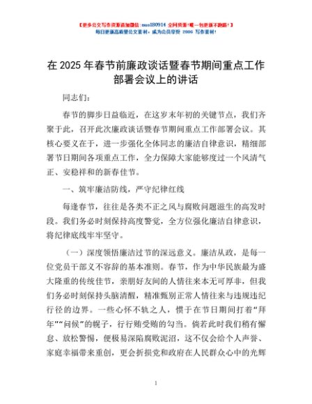 / 在2025年春节前廉政谈话暨春节期间重点工作部署会议上的讲话