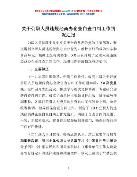 / 关于公职人员违规经商办企业自查自纠工作情况汇报