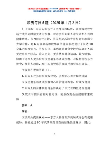 / 职测每日5题(2025年1月2日)