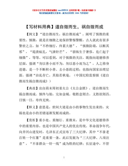 / 【写材料用典】道自微而生,祸自微而成