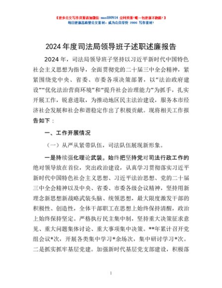 / 2024年度司法局领导班子述职述廉报告