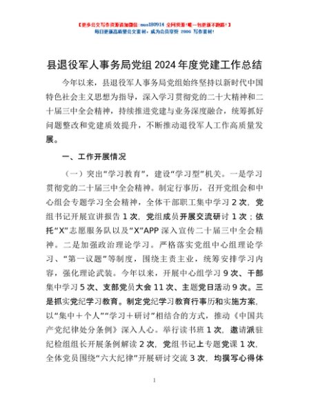 / 县退役军人事务局党组2024年度党建工作总结