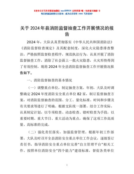 / 关于2024年县消防监督抽查工作开展情况的报告
