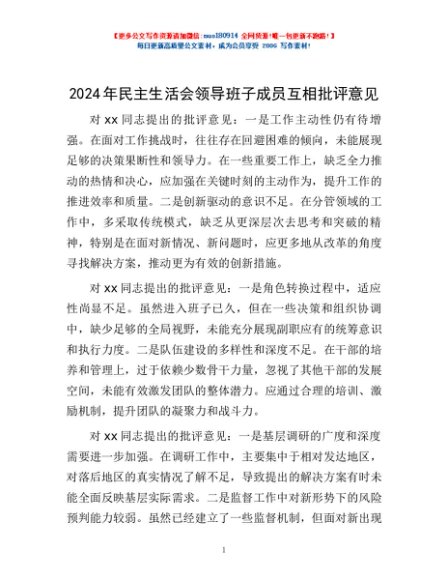 市委副书记 2024 年度民主生活会个人对照检查材料