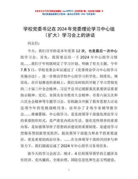 / 学校党委书记在2024年党委理论学习中心组(扩大)学习会上的讲话