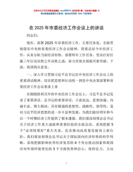 / 在2025年市委经济工作会议上的讲话