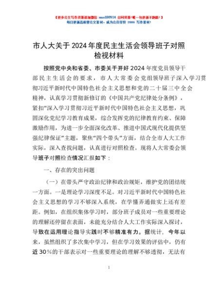 / 市人大关于2024年度民主生活会领导班子对照检视材料
